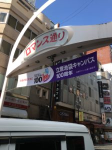 このゲートをくぐり抜けしばらく進むとロサ会館があります。西口から出て10分かからない位の距離です。