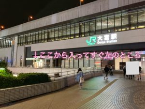 JR大宮駅からの行き方です。中央改札を出て東口方面に歩きます。突き当たりを今度は左に曲がります。