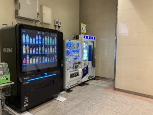 ありました。証明写真機です!自動販売機の奥に追いやられてます。やはり存在が感薄い!