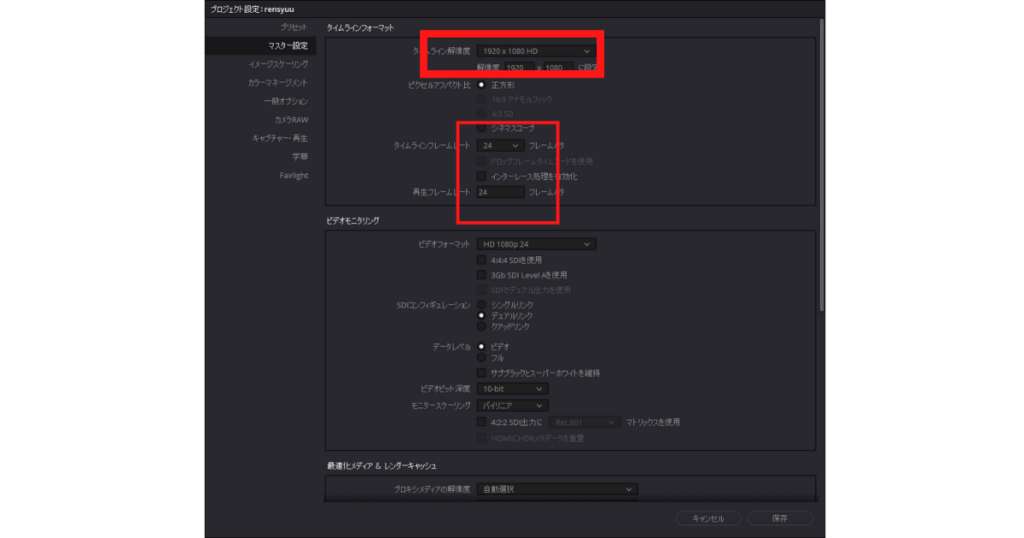 色々と調べた結果、デフォルト設定では何とプレビュー動画の解像度がUltraHDとなっておりました。そこまで高解像度である必要はナシ!という方は下図設定を変更してください。また、フレームレートの設定変更も可能です。